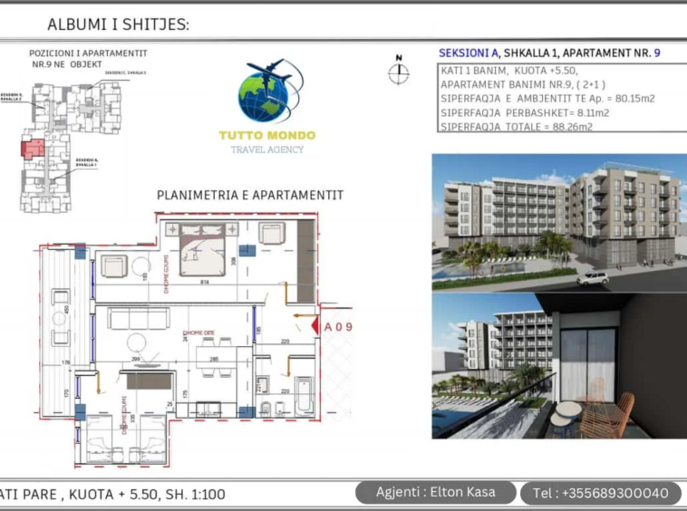 1+1 and 2+1 apartments for sale in the area of Golem in Durres. The apartment is located in a building complex under construction. we have 1+1 structures from the 1st floor to the 6th floor. We also have 2+1 structures from the 2nd floor to the 6th floor. The apartments have an elevator as well as many facilities such as market, pharmacy, playground, etc. The palace is located 100 meters from the sea.